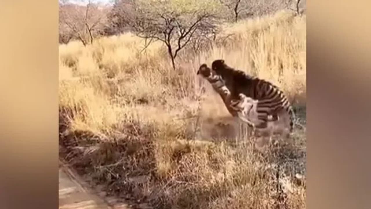 രണ്ട് കടുവകള് തമ്മില് പരസ്പരം പോരടിക്കുന്നതാണ് വീഡിയോയുടെ ഉള്ളടക്കം. നിര്ത്തിയിട്ടിരിക്കുന്ന വാഹനത്തില് നിന്നാണിത് പകര്ത്തിയതെന്ന് വീഡിയോയിലൂടെ വ്യക്തമാകുന്നുണ്ട്. കാട്ടുപാതയോട് ചേര്ന്നുള്ള ഭാഗത്ത് വച്ച് ഏറെ വന്യമായ രീതിയിലാണ് രണ്ട് കടുവകളും പരസ്പരം ആക്രമിക്കുന്നത്. ശേഷം ഇതിലൊരു കടുവ പോരാട്ടത്തില് വിജയിക്കുന്നതായും നമുക്ക് തോന്നാം. കാരണം മറ്റെ കടുവയെ ആക്രമിച്ച് വീഴ്ത്തിയ ശേഷം അലറിക്കൊണ്ട് ഇത് ആക്രമണത്തില് നിന്ന് പിന്തരിഞ്ഞ് വഴിയിലേക്ക് ഇറങ്ങി നടക്കുകയാണ്. ഒരുക്ഷേ സമീപത്ത് മനുഷ്യരുടെ സാന്നിധ്യം അറിഞ്ഞതോടയുമാകാം ഈ പിന്മാറ്റം.