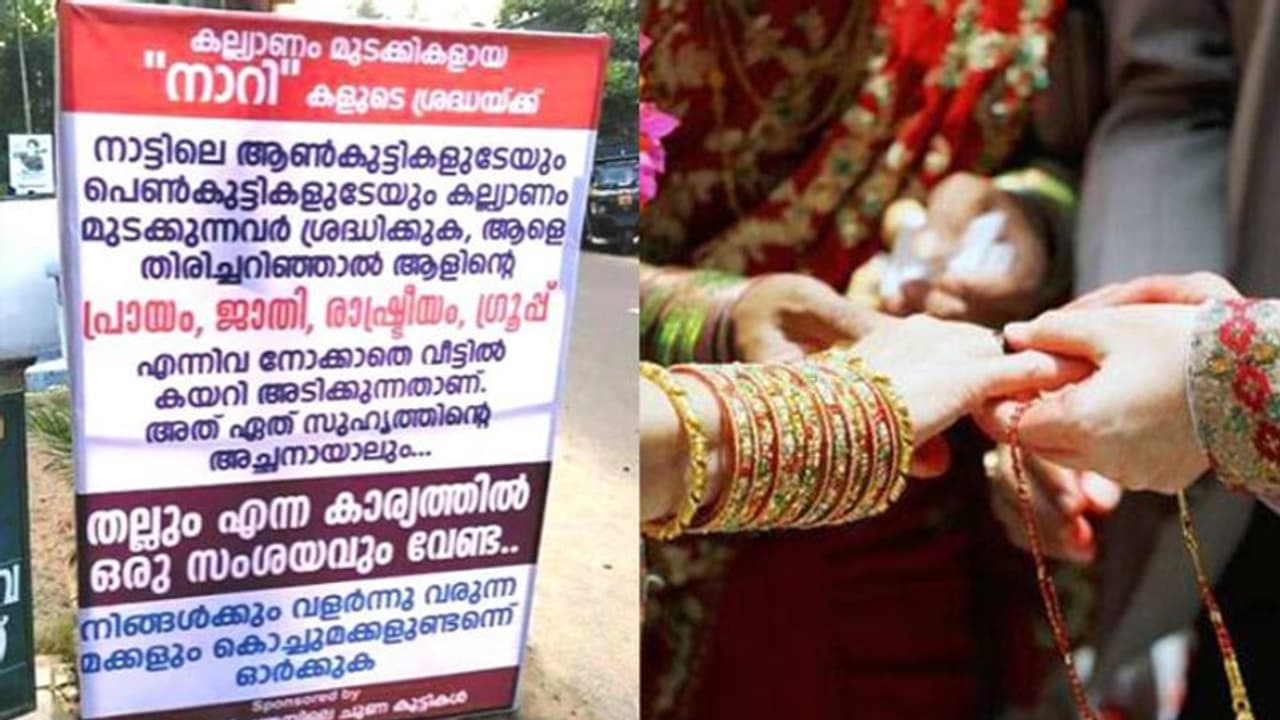 സ്ഥിരമായി വിവാഹലോചനകൾ മുടക്കുന്ന നാട്ടിലെ "മാന്യ'വ്യക്തികൾക്ക് ഒരൊന്നൊന്നൊര മുന്നറിയിപ്പുമായി പ്രത്യക്ഷപ്പെട്ട ഫ്ളക്സ് ബോർഡ് സോഷ്യൽ മീഡിയയിലെ ഏറെ ചർച്ചയായിരിക്കുകയാണ്.