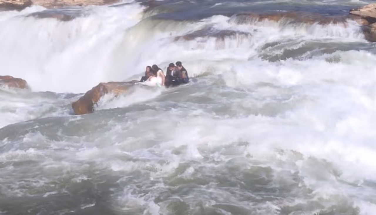 അത്തരത്തിലൊരു പ്രീവെഡ്ഡിങ് ഫോട്ടോഷൂട്ടിനിടെ നടന്ന സംഭവമാണ് ഇപ്പോള് സമൂഹ മാധ്യമങ്ങളില് പ്രചരിക്കുന്നത്. പ്രീവെഡ്ഡിങ് ഷൂട്ടിനിടെ വെള്ളച്ചാട്ടത്തിന് സമീപത്തെ പാറക്കെട്ടിൽ വധൂവരന്മാർ കുടുങ്ങിയതിന്റെ ദൃശ്യങ്ങളാണ് വൈറലാകുന്നത്. രാജസ്ഥാനിലെ ചിത്തോർഗഡിൽ നവംബർ 9ന് ആണ് സംഭവം നടന്നത്. വെള്ളച്ചാട്ടത്തിന് സമീപത്തെ പാറക്കെട്ടിൽ ഫോട്ടോഷൂട്ട് നടത്തുകയായിരുന്നു ഇവര്. എന്നാല് അടുത്തുള്ള ഡാമിന്റെ ഷട്ടറുകൾ തുറന്നതോടെ ജലനിരപ്പ് ഉയരുകയും സംഘം കുടുങ്ങുകയുമായിരുന്നു.