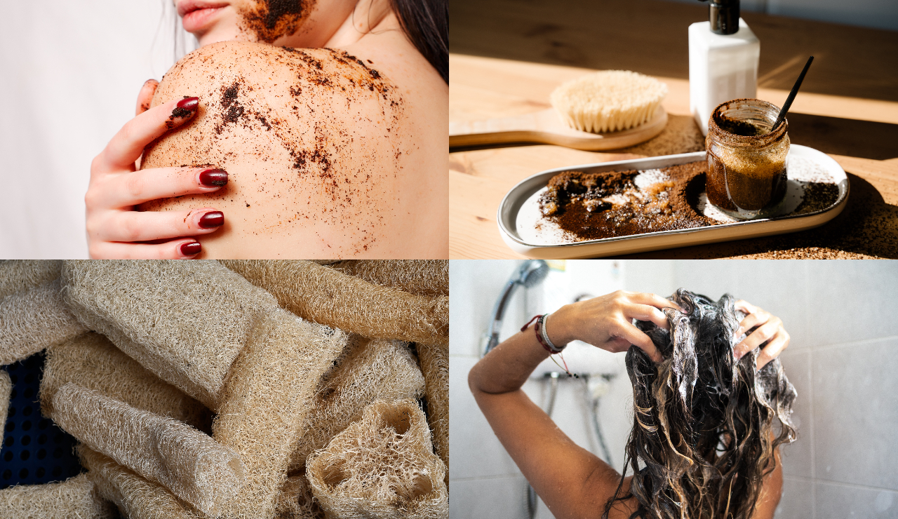 ചേരുവ: തരികളുള്ള കാപ്പിപ്പൊടി (2 ടേബിൾ സ്പൂൺ), പഞ്ചസാര (1 ടേബിൾ സ്പൂൺ), വെളിച്ചെണ്ണ (1 ടീസ്പൂൺ). ഇളം ചൂടുവെള്ളത്തിൽ ശരീരം നന്നായി നനച്ച ശേഷം, ഈ സ്ക്രബ് ഉപയോഗിച്ച് കാൽമുട്ട്, കൈമുട്ട്, കഴുത്ത്, കൈകൾ, കാലുകൾ എന്നിവിടങ്ങളിൽ വൃത്താകൃതിയിൽ മൃദുവായി മസാജ് ചെയ്യുക. 5 മിനിറ്റിന് ശേഷം കഴുകി കളയുക.