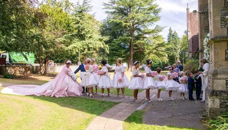 'എക്സ് ഫാക്ടര്' എന്ന ആല്ബം സീരിസിലൂടെ പ്രസിദ്ധയായ സ്കാര്ലറ്റ് ലീയുടെ വിവാഹ വസ്ത്രമാണ് ഫാഷന് ലോകത്തെ ഇപ്പോഴത്തെ ചര്ച്ച. ബേബി പിങ്ക് നിറത്തിലുളള ഗൗണില് അതിമനോഹരിയായിരുന്നു സ്കാര്ലറ്റ് ലീ. പിങ്ക് പൂക്കളും ചിത്രത്തുന്നലും കൊണ്ട് ഭംഗിയാക്കിയതായിരുന്നു ആ ഗൗണ്.