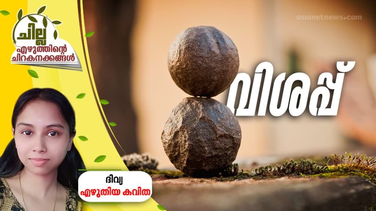 ചില്ല. മികച്ച എഴുത്തുകള്ക്ക് ഒരിടം. സൃഷ്ടികള് submissions@asianetnews.in എന്ന വിലാസത്തില് അയക്കൂ. ഒപ്പം ഫോട്ടോയും വിശദമായ വിലാസവും അയക്കണം. എഡിറ്റോറിയല് ബോര്ഡ് തെരഞ്ഞെടുക്കുന്ന സൃഷ്ടികള് പ്രസിദ്ധീകരിക്കും