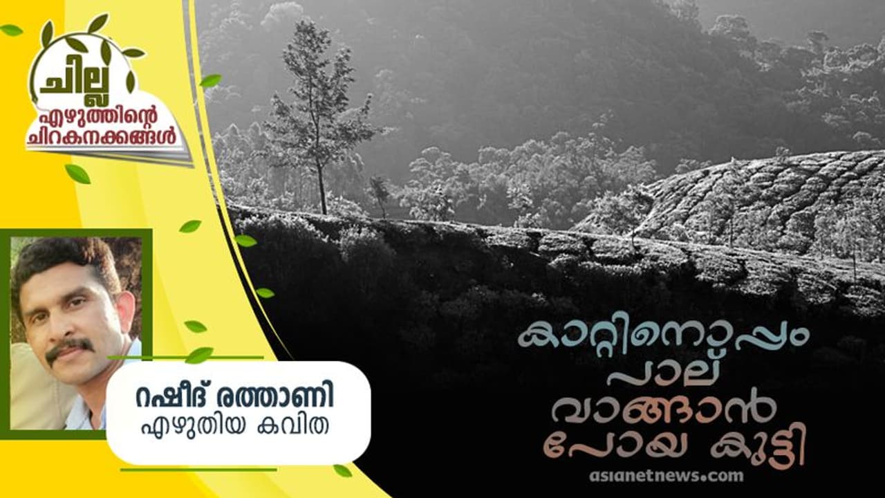 ചില്ല. മികച്ച എഴുത്തുകള്ക്ക് ഒരിടം. സൃഷ്ടികള് submissions@asianetnews.in എന്ന വിലാസത്തില് അയക്കൂ. ഒപ്പം ഫോട്ടോയും വിശദമായ വിലാസവും അയക്കണം. എഡിറ്റോറിയല് ബോര്ഡ് തെരഞ്ഞെടുക്കുന്ന സൃഷ്ടികള് പ്രസിദ്ധീകരിക്കും