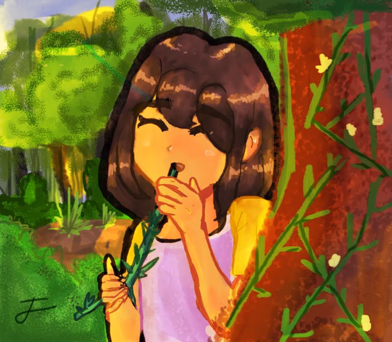 കാട്ടമൃതും കാട്ടുപഴങ്ങളും കഴിച്ച് പാറപ്പുറത്ത് കാറ്റുകൊണ്ട് കിടക്കവെ അവരുടെ മനസ്സ് ആമി മുത്തശ്ശിയുടെയും കൂട്ടുകാരുടെയും കഥകളിലേക്ക് മടങ്ങിപ്പോയി.
