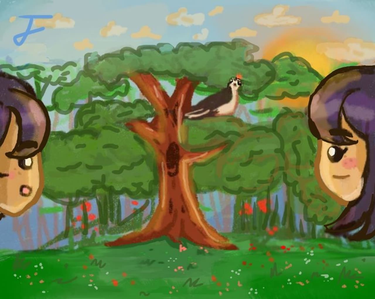 പുല്മേട്ടില് മരങ്ങളുടെ വിത്തു നടുന്ന തിരക്കിലായിരുന്നു തച്ചന് മരംകൊത്തിയും കൂട്ടരും. ഇടക്ക് അച്ഛന് തക്കോഡക്കോയോടുപറഞ്ഞു. ''തക്കൂ, നീ ദൂരെയെങ്ങും പോവരുത്. ഞാന് കൂട്ടിലൊന്ന് പോയി വരാം.''