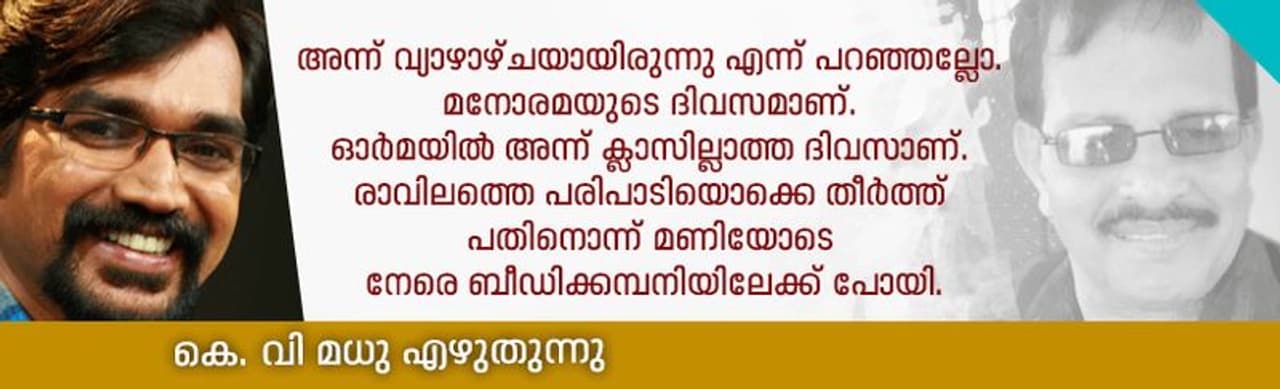 വ്യാഴാഴ്ച വൈകുന്നേരമാണ് മുഴക്കോം ബീഡിക്കമ്പനിക്കടുത്തുള്ള കുഞ്ഞിരാമേട്ടന്റെ പീടികയില് മലയാള മനോരമ ആഴ്ചപ്പതിപ്പ് വരുന്നത്. ചൊവ്വാഴ്ചകളില് മംഗളവും വരും. ചില വ്യാഴാഴ്ചകളില് ഉച്ചയോടെ വരാറുണ്ട് എന്നും അറിയാം. ബീഡിക്കമ്പനിയില് ജോലി ചെയ്യുന്ന ഗീതേട്ടിയും ലീലേട്ടിയുമൊക്കെ മാറിമാറിയാണ് മംഗളവും മനോരമയും വാങ്ങിക്കുക. ഒരാള് മംഗളം ഒരാള് മനോരമ. പിന്നീട് ആദ്യത്തെ ചൂട് കഴിഞ്ഞാല് സുരേശന്റെ അമ്മ നാരായണിയേട്ടിയുടെ അടുത്തും കിട്ടും. ബീഡിക്കമ്പനിയില് പോയി അവരുടെ കോപ്പി ഞാന് നേരത്തെ പോയി വാങ്ങും അതാണ് എന്റെ ശീലം. അവര് ജോലി കഴിഞ്ഞ് തിരിച്ചെത്തുമ്പോഴേക്കും വായിച്ച് തീര്ത്ത് അവരുടെ വീടുകളില് തിരിച്ചെത്തിക്കും. ഒമ്പതാംക്ലാസിലൊക്കെ ചെറുതായി തുടങ്ങിയ വായനയാണ്. പത്താംക്ലാസ് കഴിഞ്ഞതോടെ മൂര്ദ്ധന്യത്തിലെത്തി. പത്തിന്റെ വെക്കേഷനില് കടുത്ത വായനയായി. അതൊരു പ്രീഡിഗ്രി അവസാനംവരെ തുടര്ന്നു. പിന്നെ ക്ലായിക്കോട് ഗ്രാമീണ വായനശാല വന്നതോടെ വായനാശൈലി മാറി.