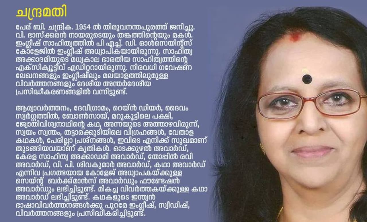 ഒരുദിവസം കമലാസുരയ്യ അവളോടു പറഞ്ഞു: ''നീയ്യിങ്ങനെ എന്നെ അനുകരിച്ച് നടന്നാല് മതിയോ? എന്തിനാ കുട്ട്യേ, നീ അയാളെ ഇങ്ങനെ പേടിക്കണേ? അയാളെക്കുറിച്ചുതന്നെ കഥയെഴുത്. നീയിട്ടിരിക്കണ പ്രച്ഛന്നവേഷമില്ലേ, അത് അയാളെ അണിയിച്ചാ മതീന്നേ. ധൈര്യായിട്ടെഴുത്. എന്റെ കഥകളിലൊക്കെ ഞാന് കളിക്കണ കളിയാ അത്.''`വാക്കുല്സവത്തില് ഇന്ന് ചന്ദ്രമതി എഴുതിയ കഥ-ചവുണ്ട മുണ്ട്. ഡിസി ബുക്സ് പുറത്തിറക്കിയ 'വാണ്ടര് ലസ്റ്റ്' എന്ന കഥാ സമാഹാരത്തിലുള്ളതാണ് ഈ കഥ.