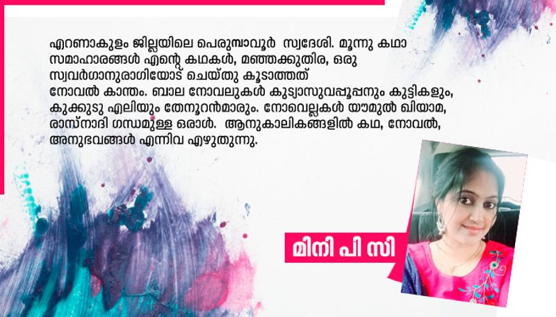 അടിത്തട്ട് കാണും വിധം തെളിഞ്ഞൊഴുകുന്ന നദിയുടെ സുതാര്യതയാണ് പുറമേനിന്നു കാണുമ്പോള് മിനി പിസിയുടെ കഥകള്ക്ക്. എന്നാല്, സൂക്ഷിച്ചുനോക്കിയാല് കാണാം, കലങ്ങി മറിയുന്ന അടിയൊഴുക്കുകള്. അപ്രതീക്ഷിതമായ ചുഴികള്. ആഴങ്ങളില് കാത്തിരിക്കുന്ന ഇളക്കങ്ങള്. കഥയിലേക്ക് ഇറങ്ങി നില്ക്കുമ്പോള് വായനക്കാരും ഉലഞ്ഞുപോവും വിധമാണ് ലളിതവും ഋജുവുമായ ആ ആഖ്യാനം. ആഖ്യാനത്തിലെ ഈ അവിചാരിത തിരിവുകളാണ് നമുക്ക് പരിചിതവും അപരിചിതവുമായ കഥാ സന്ദര്ഭങ്ങളെ ഒട്ടും സാധാരണമല്ലാത്ത വായനാനുഭവമാക്കുന്നത്. നമുക്കറിയാവുന്ന മനുഷ്യരാണ്, ലോകമാണ്, ജീവികളാണ് ആ കഥകളില്. എന്നാല്, പറഞ്ഞുവരുമ്പോള് അവയെല്ലാം നമുക്കപരിചിതമായി മാറുന്നു.