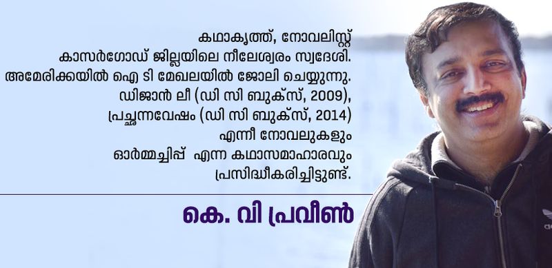 ആര്ക്കും എവിടെനിന്നും കാണാവുന്ന കണ്ണാടിവീടുകളില് താമസിക്കുന്ന മനുഷ്യര്, അതിനുള്ളിലും സ്വകാര്യമെന്നുകരുതി കൊണ്ടുനടക്കാന് ശ്രമിക്കുന്ന ജീവിതത്തിലേക്ക് തുറന്നുവെച്ച സര്വെയിലന്സ് ക്യാമറാ ദൃശ്യങ്ങളാണ് കെ. വി പ്രവീണിന്റെ കഥകള്. സദാ നിരീക്ഷണത്തില് കഴിയുമ്പോഴും അതൊന്നും ഗൗനിക്കാതെ, സ്വകാര്യതയുടെ ആഘോഷങ്ങളില് തിമിര്ക്കുന്ന മനുഷ്യരുടെ പല മാതിരി വേവലാതികളാണ് അതില്. നവസാങ്കേതികതയും ഉദാരവല്കരണ നയങ്ങളും ചേര്ന്ന് രൂപപ്പെടുത്തിയ ആഗോളവല്ക്കരണാനന്തര ജീവിതത്തിന്റെ സങ്കീര്ണ്ണമായ സ്വത്വപ്രതിസന്ധികള് നമുക്കതില് വായിച്ചെടുക്കാം. ഒരു സംഭാഷണത്തില് പ്രവീണ് പറയുന്നത് പോലെ, 'അധികാരം, ഓര്മ്മ, ടെക്നോളജി എന്നീ മൂന്ന് ബിന്ദുക്കളെ യോജിപ്പിക്കുന്ന ഒരു ത്രികോണം' തന്നെയാണ് ആ ജീവിതം. അതിനെ സൂക്ഷ്മമായി നിരീക്ഷിക്കുകയും വായിക്കുകയും ചെയ്യുന്നൊരാള് സഹജീവികളോട് പറയുന്ന അ്ടക്കംപറച്ചിലായി പ്രവീണിന്റെ രചനാലോകത്തെ വായിച്ചെടുക്കാം.