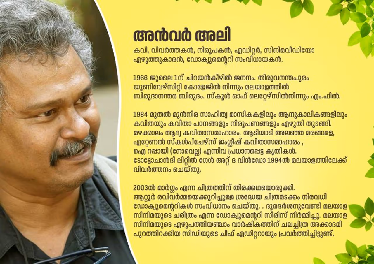 വാക്കുല്സവത്തില് ഇന്ന് പ്രശസ്ത കവി അന്വര് അലിയുടെ അഞ്ച് കവിതകള്