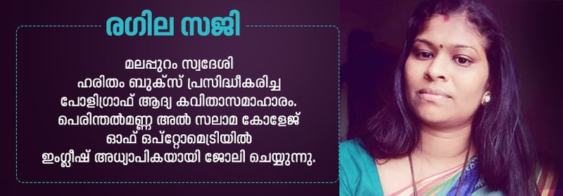 കാഴ്ചയുടെ ഒരു ഡിസക്ഷന് ടേബിളുണ്ട് രഗില സജിയുടെ കവിതകളില്. അവിടെത്തുമ്പോള് ജീവിതം അതിന്റെ ഏറ്റവും സൂക്ഷ്മമായ തലങ്ങളിലേക്ക് ചിതറുന്നു. അനുഭവങ്ങള് അതിന്റെ ഉറവിടങ്ങളിലേക്ക് ചുരുങ്ങുന്നു. വൈകാരികതകളുടെ ആഴങ്ങള് വെളിവാകുന്നു. ഓര്മ്മകള് അത് പിറന്ന വഴികളെ തൊടുന്നു. പ്രകൃതിയും ലോകവും പ്രപഞ്ചവുമെല്ലാം അതിന്റെ ഏറ്റവും സൂക്ഷ്മ വിതാനങ്ങളിലേക്ക് പിന്മടങ്ങുന്നു. നോക്കിനോക്കി ഓരോന്നിന്റെയും അടരുകള് ചികയുന്ന ഒരു മജീഷ്യന് ആണിവിടെ കവി. ആ അടരുകളില് കണ്ടെത്തപ്പെടുന്നത്, അതേ സൂക്ഷ്മതയില്, അതേ ഗാഢതയില് കവിതകളില് പകര്ത്തപ്പെടുന്നു. ആ കവിത നമ്മുടെ സാധാരണ നോട്ടങ്ങള്ക്കു മേല് മറ്റൊരു കാഴ്ചാസാദ്ധ്യത കൊണ്ടുവെയ്ക്കുന്നു. ജീവിതത്തെയും ലോകത്തെയും മറ്റൊരു കണ്ണിലൂടെ സമീപിക്കാനുള്ള സാദ്ധ്യതകള് തുറക്കപ്പെടുന്നു. മലയാള കവിത ആഴത്തിലാഴത്തിലേക്ക് പോവുന്ന വഴിയില്, വേറിട്ടു നില്ക്കാന് രഗില സജിക്ക് കഴിയുന്നത് ഇങ്ങനെയാണ്.