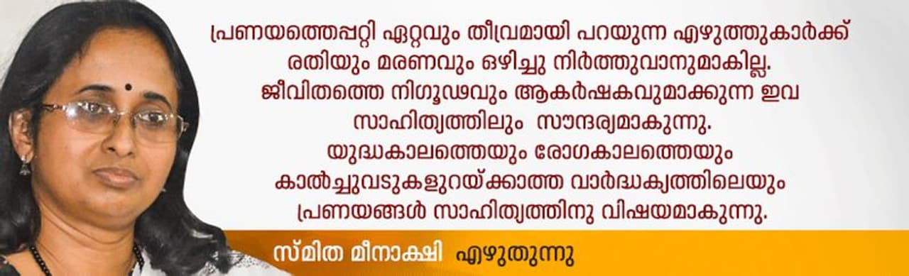 പ്രായവും രോഗവും കെടുത്താത്ത പ്രണയങ്ങള്. സാറാ ജോസഫ്, എം ടി വാസുദേവന് നായര്, ടി പത്മനാഭന്, കെ. ആര് മീര എന്നിവരുടെ സൃഷ്ടികളിലൂടെ ഒരു യാത്ര. സ്മിത മീനാക്ഷി എഴുതുന്നു