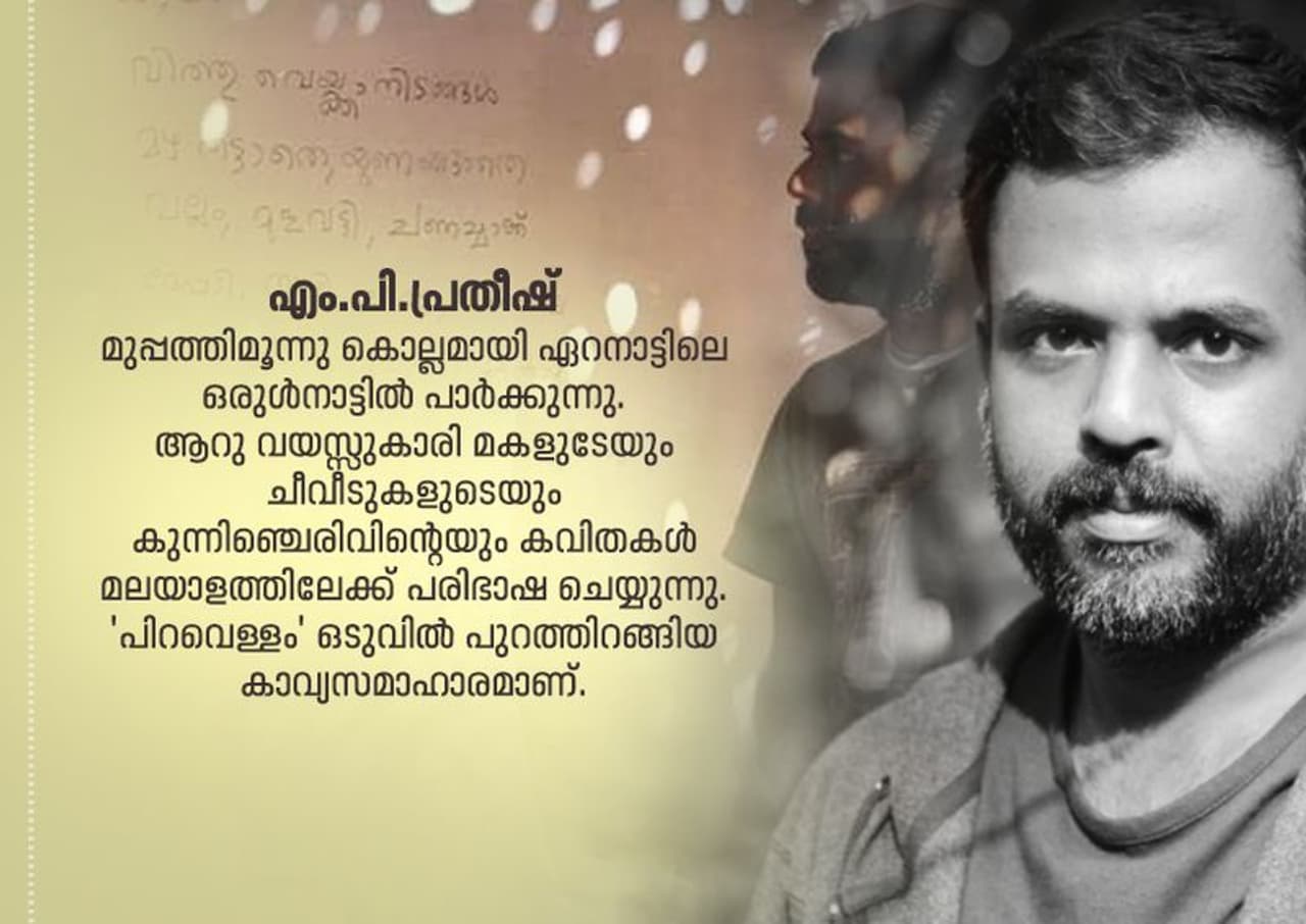 സമകാലീന മലയാള കവിതയിലെ ഏറ്റവും വ്യത്യസ്തമായ അടരുകളിലൊന്നാണ് എം പി പ്രതീഷിന്റെ കവിതകള്. അകമേ അതൊരാവാസ വ്യവസ്ഥ. പ്രകൃതിയെ, ഭൂമിയെ, ജീവനെ കവിതയുടെ സൂക്ഷ്മദര്ശിനികളിലൂടെ അടയാളപ്പെടുത്തുന്നു, ആ കവിതകള്. പുതിയ കാലത്തിന്റെ ആരവങ്ങളല്ല, ജീവിതാഘോഷങ്ങള്ക്കിടയില് ആരുടെയും കണ്ണുപതിയാതെ പോവുന്ന ഇടങ്ങളും അനുഭവങ്ങളുമാണ് പ്രതീഷിന്റെ കവിതകള് വിനിമയം ചെയ്യുന്നത്. ശാന്തമായ, സൗമ്യമായ കവിതയ്ക്കു മാത്രം ചെന്നെത്താനാവുന്ന ആഴമേറിയ ഒരനുഭവമാണത്. വന്യതയും വയലന്സും പോലും അവിടെ, അഴിച്ചെടുക്കുന്തോറും കുറുകുന്ന സൂക്ഷ്മതയാവുന്നു. വായനക്കാരുടെ ശ്രദ്ധയെ ആവോളം ആവശ്യപ്പെടുന്ന, ആവാഹിക്കുന്ന കവിതയുടെ വേറിട്ട ഇടം. സൂക്ഷ്മനിരീക്ഷണങ്ങള്, അസാദ്ധ്യമായ ആംഗിളുകളില്നിന്നുള്ള നോട്ടങ്ങള്, ആഖ്യാനത്തിന്റെ ഉപരിതലത്തിലേക്ക് ജീവിതത്തെ ഇഞ്ചിഞ്ചായി വിളിച്ചുവരുത്തുന്ന രചനാതന്ത്രങ്ങള്. പ്രതീഷിന്റെ കവിതകള് മലയാള കവിതയെ, എന്നോ അറ്റുപോയ ഒരു പൂമ്പാറ്റച്ചിറകനക്കത്തിലേക്ക് പ്രതിഷ്ഠിക്കുന്നു.