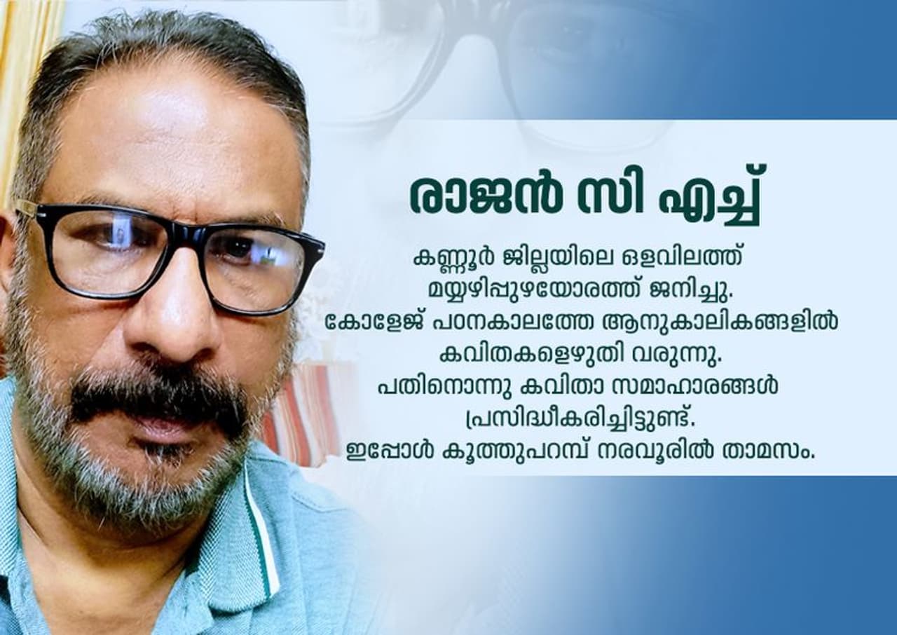 കണക്കും കവിതയും തമ്മിലുള്ള ദൂരമാണ് കവി രാജന് സി എച്ചിന്റെ ജീവിതം. ഒരറ്റത്ത് ബാങ്കിംഗ് രംഗത്തെ തിരക്കുള്ള പ്രൊഫഷണല് ജീവിതം. മറ്റേയറ്റത്ത്, ഏറ്റവും സൂക്ഷ്മവും ഏകാന്തവുമായ ധ്വനികള് ഒപ്പിയെടുക്കാന് കാതുകൂര്പ്പിച്ചിരിക്കുന്ന കാവ്യജീവിതം. അക്കങ്ങള്ക്കും അക്ഷരത്തിനുമിടയിലൂടെ ചരിക്കുന്ന രാപ്പകലുകളെ വാക്കുകള് കൊണ്ട് ബാലന്സ് ചെയ്യുന്നതിന്റെ സംഘര്ഷങ്ങള് എന്നാല്, രാജന് സി എച്ചിന്റെ കവിതകളില് കാണാനാവില്ല. പകരം, അവിടെയുള്ളത് അപാരമായ ശാന്തത. മൗനത്തിന്റെ നാനാര്ത്ഥങ്ങള്. ജീവിതത്തിന്റെ ഏറ്റവും സൂക്ഷ്മമായ അടരുകള്. ആരവങ്ങള് മുഴക്കിപ്പായുന്ന ജീവിതത്തിന്റെ ഓരത്തിരുന്ന്, ഉള്ളിനുള്ളിലേക്ക് യാത്ര പോവുന്ന കവിതകളാണത്. ഏകാന്തമായ നടത്തങ്ങള്ക്ക് ആജീവനാന്തം വിധിക്കപ്പെട്ട വരികള്. ആര്ക്കും വേണ്ടാത്തവയ്ക്കു ചുറ്റുംകഴിയുന്ന ആക്രിക്കാരിയെപ്പോലെ, ഇറയത്തിരുന്ന് പെറുക്കിക്കൂട്ടുന്ന വെയില്ച്ചീളുകള് അവിടെക്കാണാം. തുറക്കാനിടയില്ലാത്ത വാതില്ക്കല് തനിച്ചുനില്ക്കുന്ന നിലാവിനെ അവിടെയറിയാം. കണക്കുപെട്ടികളിലിടമില്ലാത്ത മൂകനിശ്വാസങ്ങളുടെ സൂക്ഷിപ്പുകേന്ദ്രമായി മാറുന്നുണ്ട്, ഈ കവിതകള്.