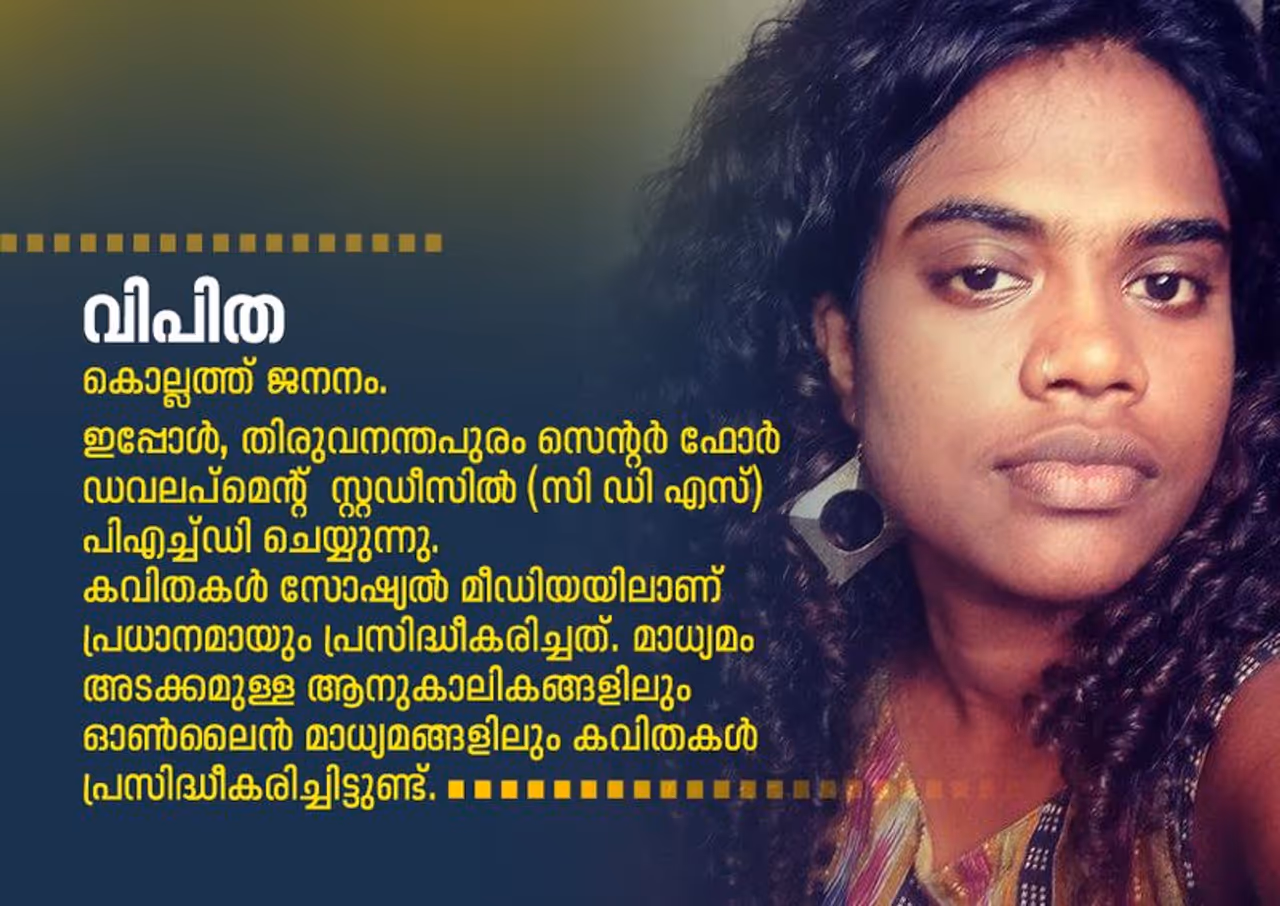'നിന്റെ കവിത മനസ്സിലാവുന്നില്ലല്ലോ' എന്ന് അഭിപ്രായം പറഞ്ഞ കൂട്ടുകാരികളെ കേട്ട്, 'എല്ലാവര്ക്കും മനസ്സിലാവുന്ന' കവിത എഴുതാന് തുനിഞ്ഞൊരു നിമിഷമുണ്ട്, ചെറിയ കാലയളവും കുറഞ്ഞ കവിതകളും കൊണ്ട് സമകാലിക മലയാള കവിതയില് ശ്രദ്ധേയയായ വിപിതയുടെ കാവ്യജീവിതത്തില്. 'അതൊരു വല്ലാത്ത തിരിച്ചറിവായിരുന്നു' എന്നാണ് ഒരഭിമുഖത്തില് വിപിത പറയുന്നത്. അമൂര്ത്തമായ, സൈദ്ധാന്തിക അവ്യക്തതകളുണ്ടായേക്കാവുന്ന ചിന്തകളെ പച്ചജീവിതത്തിന്റെ അടുപ്പിലേക്ക് ഇറക്കിവെയ്ക്കാന് തീരുമാനം എടുത്തിരിക്കാവുന്ന ആ നിമിഷത്തിന്റെ സാക്ഷ്യങ്ങളാണ് വിപിതയുടെ ശ്രദ്ധേയമായ കവിതകളിലേറെയും. ജീവിതത്തിന്റെ പകര്ത്തിയെഴുത്ത് എന്ന പറച്ചിലില് ഒതുക്കാനാവില്ല അത്. യാഥാര്ത്ഥ്യങ്ങളുമായുള്ള നേര്ക്കുനേര് യുദ്ധമാണത്. കണ്ടും കേട്ടും അനുഭവിച്ചും പൊള്ളിയ ജീവിതവുമായുള്ള തുറന്ന ഏറ്റുമുട്ടല്. അതിനാലാവണം, സാധാരണ മനുഷ്യരുടെ ഉള്ളകങ്ങളില് കാലങ്ങളോളം പൊറ്റകെട്ടിക്കിടന്ന ഏങ്ങലടികളുടെയും ആനന്ദങ്ങളുടെയും അതിശയങ്ങളുടെയും രോഷങ്ങളുടെയും കേട്ടെഴുത്തും കണ്ടെഴുത്തുമായി വിപിതയുടെ കവിതകള് മാറുന്നത്.