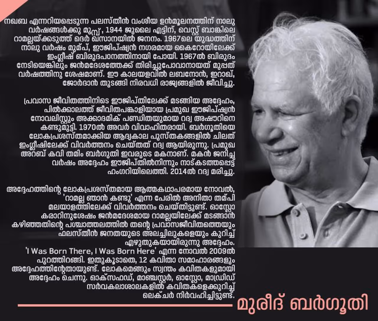 Read more: മുരീദ് ബര്ഗൂതി: സാധാരണ ജീവിത നിമിഷത്തെ അസാധാരണമാക്കിയ കവി