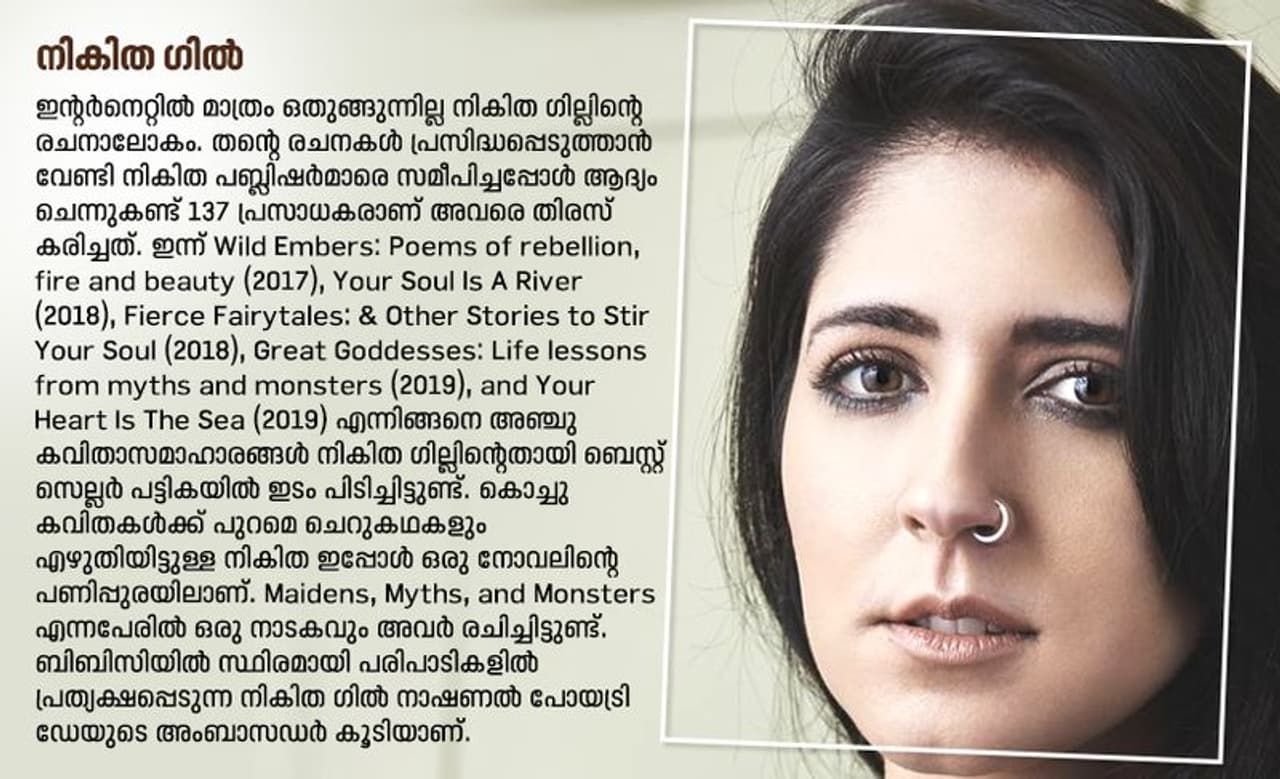 നികിതാ ഗില്ലിന്റെ തിരഞ്ഞെടുത്ത കവിതകളുടെ മലയാളം ചുവടെ