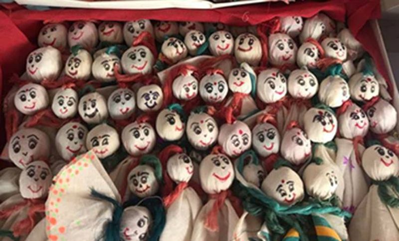 വലിയ കൗതുകത്തോടെ ചിന്നു അവയിലൂടെ കണ്ണോടിച്ചു. എത്ര തരത്തില്, എത്ര നിറങ്ങളിലുള്ള പാവക്കുട്ടികള്. അവയ്ക്കൊക്കെ കറുത്ത നിറത്തില് കണ്ണും മൂക്കും ചെവിയുമൊക്കെ വരച്ചുവച്ചിട്ടുണ്ട്. ചുണ്ടുകള് ചുവപ്പിച്ചവ പെണ്കുട്ടികളാവാം. അരപ്പട്ടയായി ചുറ്റിയ ചരടുകള്ക്കും തൂക്കിയിടാനായി നെറുകയില് കെട്ടിവച്ച ചരടിനും പല നിറങ്ങളാണ്.