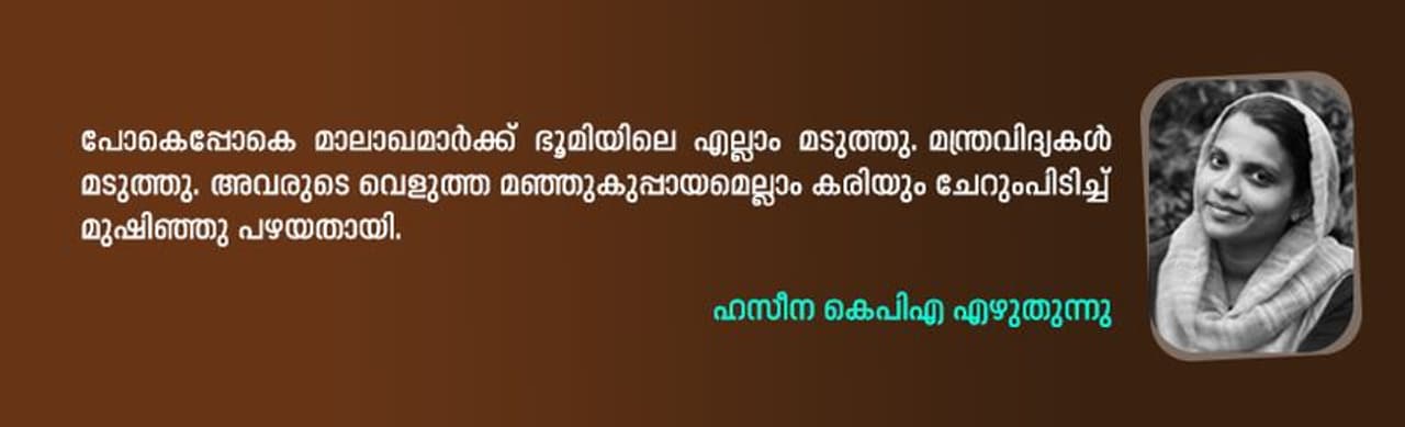കുഞ്ഞുങ്ങൾ അമ്മേയെന്ന് വിളിക്കുമ്പോൾ അവർക്ക് അടിമേയെന്ന് കേൾക്കുന്നപോലെ തോന്നി. മാലാഖമാർക്ക് ദേഷ്യവും സങ്കടം വന്നു. എന്തു ചെയ്യാം! പാവം മാലാഖമാർ. അവർ അരിശപ്പെട്ടും അലിഞ്ഞും കരഞ്ഞുമൊക്കെ നോക്കി. മനുഷ്യരുണ്ടോ കേൾക്കുന്നു! ദൈവമുണ്ടോ കേൾക്കുന്നു.
