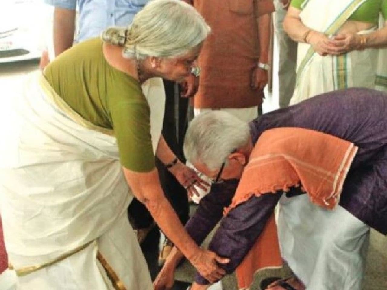 സുഗതകുമാരിയുടെ കാലില് തൊട്ടുവന്ദിക്കുന്ന വിഷ്ണുനാരായണന് നമ്പൂതിരി