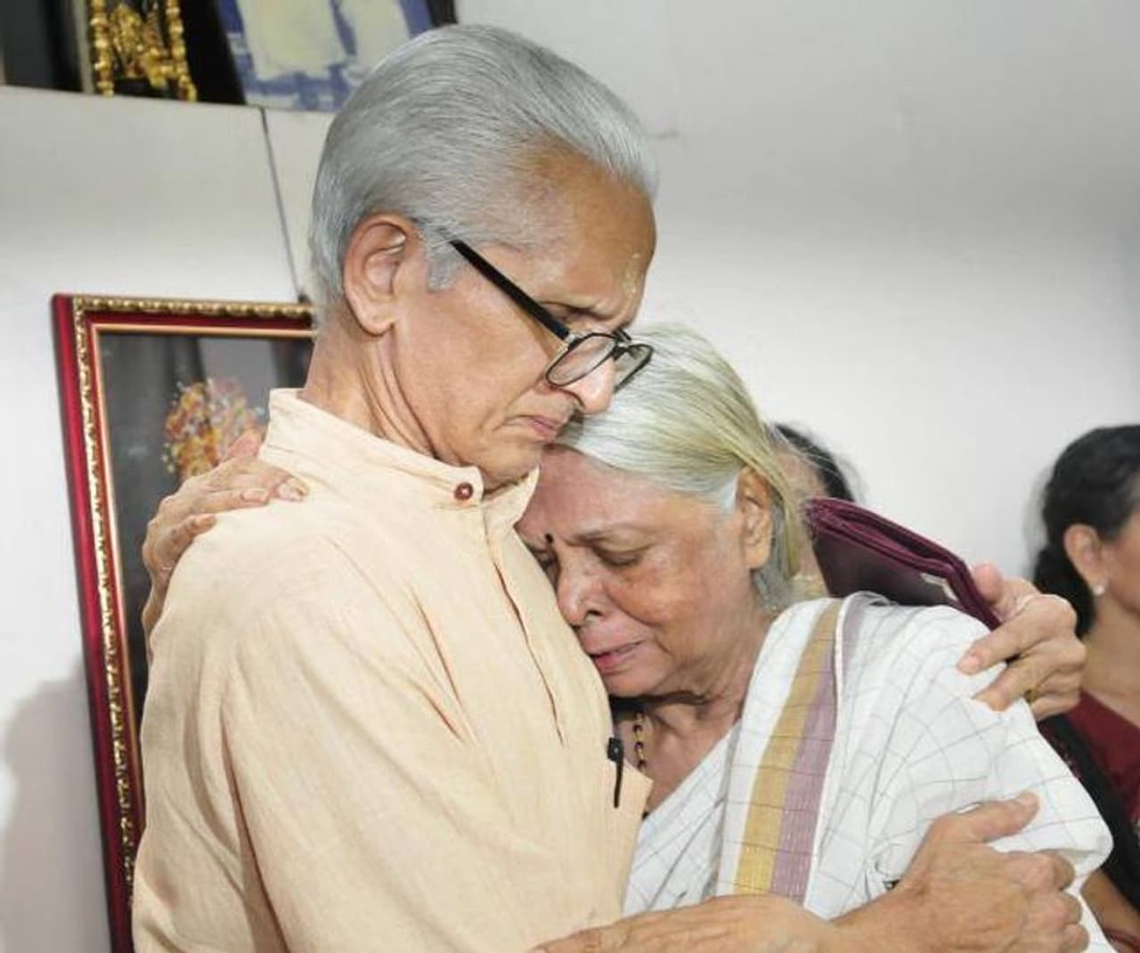 ഹൃദയകുമാരി ടീച്ചറുടെ വിയോഗത്തില് ഉലഞ്ഞുപോയ സുഗതകുമാരിയെ ആശ്വസിപ്പിക്കുന്ന വിഷ്ണുനാരായണന് നമ്പൂതിരി