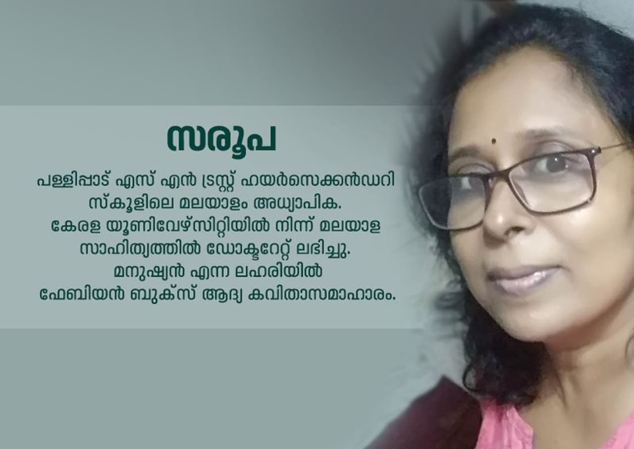 ജീവിതത്തിനും മരണത്തിനുമിടയിലെ അതിസാധാരണ ഇടങ്ങളെ അസാധാരണ അനുഭവങ്ങളാക്കി മാറ്റുന്ന സൂക്ഷ്മനോട്ടങ്ങളാണ് സരൂപയുടെ കവിതകള്. വെറുമൊരിലയെപ്പോലും മാന്ത്രികമായ നിറക്കൂട്ടായി മാറ്റുന്ന സൂക്ഷ്മദര്ശിനിയെപ്പോലെ, യാഥാര്ത്ഥ്യങ്ങളുടെ മുഷിപ്പന് ജീവിതക്രമത്തിന് മേല് ഈ കവിതകള് ഭാവനയുടെ പുതിയതലം വിന്യസിക്കുന്നു. കാഴ്ചകള് അന്നേരം മാറുന്നു. കാഴ്ചപ്പാട് മാറുന്നു. ഈ കവിതകള്, ഒരിക്കലും കാണാത്ത വിധം ജീവിതത്തെ അതിസൂക്ഷ്മതലത്തില് കാണാനുള്ള കണ്ണായി മാറുന്നു.