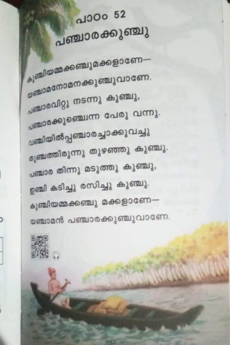 കേരള സര്ക്കാറിന്റെയും ബാലാവകാശ കമ്മീഷന്റെയും മൂക്കിനു താഴെ വച്ച് കുഞ്ഞു കുട്ടികളെക്കൊണ്ട് തൊഴിലെടുപ്പിക്കുന്നതിനെ സ്തുതിക്കുന്ന ഒരു കവിത അഞ്ചു വയസ്സുള്ള കുട്ടികള്ക്കു പഠിക്കാനായി നിര്ദ്ദേശിക്കുന്ന ഒരു വിദ്യാഭ്യാസ വകുപ്പിന്റെ ധാര്ഷ്ട്യത്തെക്കുറിച്ച് എന്താണ് പറയേണ്ടത്? ജലമാര്ഗ്ഗത്തിലൂടെയാണ് കുഞ്ചു പഞ്ചസാരക്കച്ചവടം നടത്തിയിരുന്നതത്രേ! വഞ്ചിയുടെ തുഞ്ചത്തിരുന്നു തുഴഞ്ഞതും കുഞ്ചു തന്നെ! ജീവന് പണയപ്പെടുത്തിക്കൊണ്ടാണ് ആ അഞ്ചു വയസ്സുകാരന് തൊഴിലെടുത്തിരുന്നതെന്ന് ചുരുക്കം.