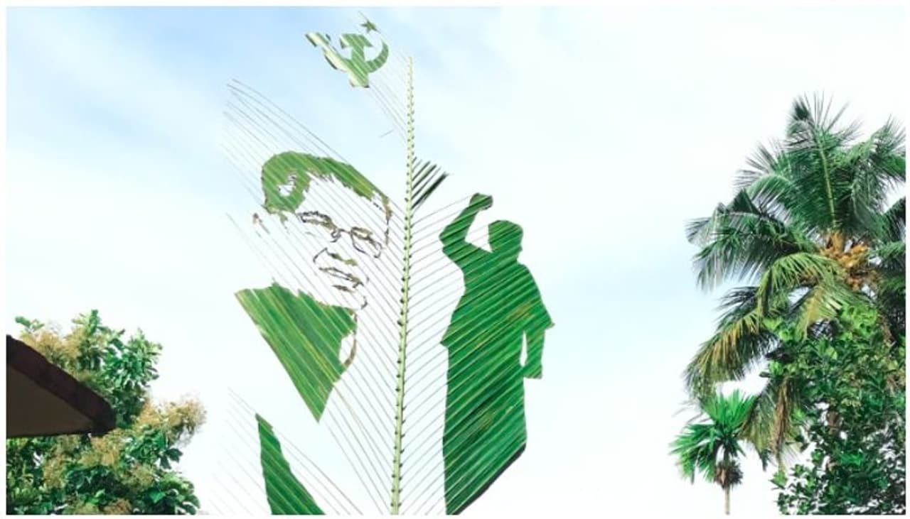 തെങ്ങോലയില് തന്സീല് തീര്ത്ത പിണറായി വിജയന്റെ ചിത്രം