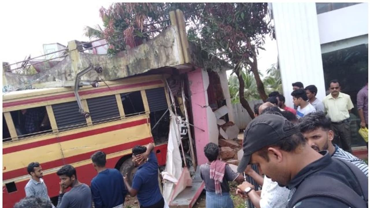എതിരെ വരികയായിരുന്നു പിക്കപ്പ് വാനിനെ ഇടിച്ച ബസ് നിയന്ത്രണം വിട്ട് എതിരെ വന്ന രണ്ട് ഇരുചക്രവാഹനങ്ങളെ ഇടിച്ച ശേഷമാണ് സമീപത്തെ കടയിലേക്ക് ഇടിച്ചുകയറിയത്. അപകടത്തില് ഇരുപതോളം പേര്ക്ക് പിരിക്കേറ്റതായാണ് പ്രാഥമിക വിവരം. പരിക്കേറ്റവരെ സമീപത്തെ ആശുപത്രികളില് പ്രവേശിപ്പിച്ചിരിക്കുകയാണ്.
