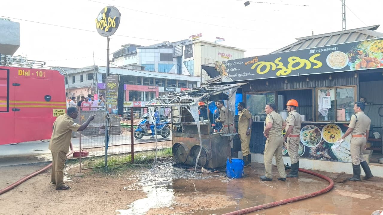 കടയ്ക്ക് പുറത്ത് ചായ തയ്യാറാക്കുന്നതിനായി പ്രത്യേകം സജ്ജീകരിച്ച തട്ടിലാണ് തീപിടിത്തമുണ്ടായത്. വൈകുന്നേരം ചായ തയ്യാറാക്കുന്നതിനായി കടയിലെ ജീവനക്കാരൻ ഗ്യാസ് അടുപ്പ് കത്തിക്കാൻ ശ്രമിക്കുന്നതിനിടെ സിലിണ്ടറിന്റെ ട്യൂബിലുണ്ടായ ഗ്യാസ് ചോർച്ച ശ്രദ്ധയിൽപ്പെടുകയും പെട്ടെന്നുതന്നെ ട്യൂബിൽ നിന്നും തീ ആളിപ്പടരുകയുമായിരുന്നു.