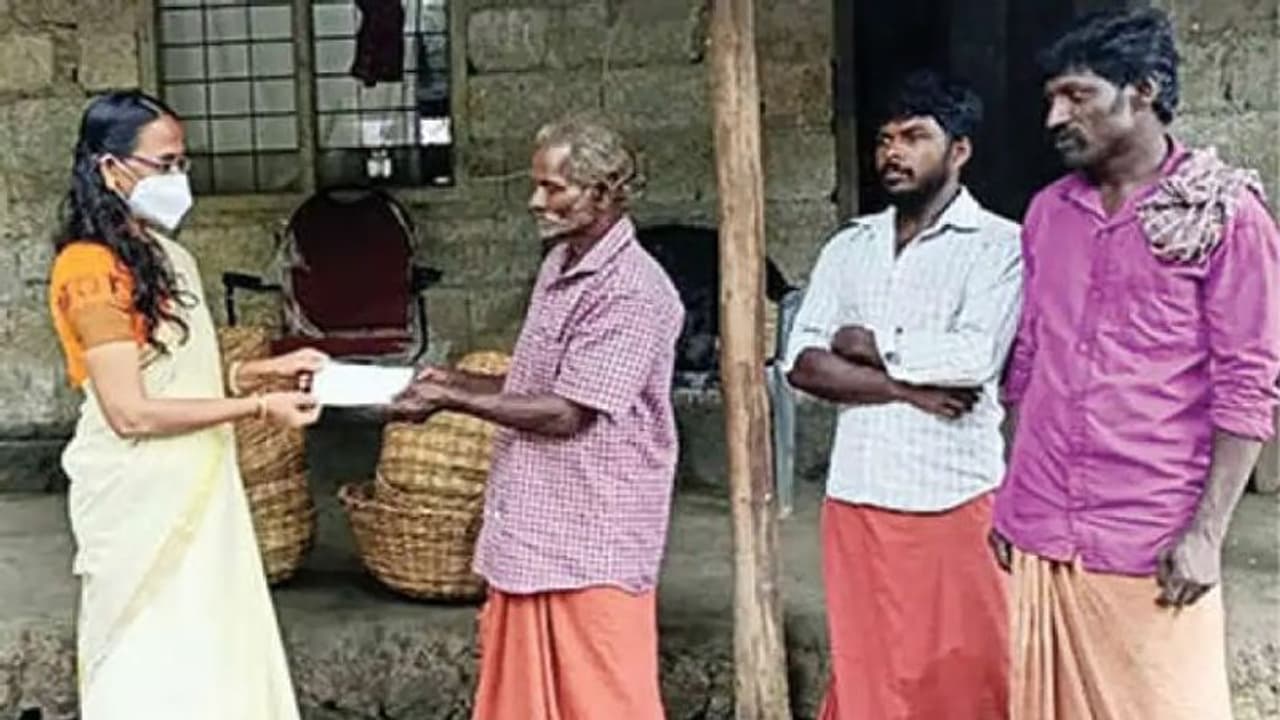 കാസർഗോഡ്: രണ്ട് മാസം മുമ്പ് എലുമ്പന്റെ വീട്ടിൽ വന്ന് ഉണക്ക കപ്പയെല്ലാം ശേഖരിച്ച് മടങ്ങിയ കൃഷി ഓഫീസർ ജയശ്രീ ഒരിക്കൽ കൂടി എലുമ്പന്റെ അടുത്തെത്തി. രണ്ട് മാസം മുമ്പ് വാങ്ങിയ കപ്പ വിറ്റ പണം നേരിട്ട് അദ്ദേഹത്തെ ഏൽപ്പിക്കുകയായിരുന്നു ഇത്തവണ ജയശ്രീയുടെ ദൗത്യം.