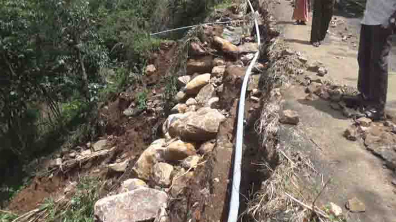 വൈദ്യുതി പോസ്റ്റുകള്ക്ക് ചുവട്ടില് നിന്നും മണ്ണ് ഒലിച്ച് പോയ അവസ്ഥയിയാലാണ്. കുഴിയില് വെള്ളം നിറഞ്ഞ് സമീപത്തെ പുരയിടത്തിലേയ്ക്ക് ഒഴുകി മണ്ണിടിഞ്ഞ് സമീപവാസിയായ കൃഷ്ണവിലാസം കൃഷ്ണന്റെ വീട് അപകടാവസ്ഥയിലായി. കുടിവെള്ള പദ്ധതിയ്ക്കായി ഏതാനും ദിവസം മുന്പാണ് ജലനിധി ഉദ്യോഗസ്ഥരുടെ നേതൃത്വത്തില് റോഡിന്റെ സമീപത്ത് ജെസിബി ഉപയോഗിച്ച് കുഴി നിര്മ്മിച്ച് ഹോസുകള് സ്ഥാപിച്ചത്. മണ്ണിടിച്ചില് ഉണ്ടാവാന് സാദ്ധ്യതയുള്ള പ്രദേശത്ത് റോഡിനോട് ചേര്ന്ന് കുഴി നിര്മ്മിയ്ക്കുകയായിരുന്നു. നിര്മ്മാണ സമയത്ത് എതിര് വശത്ത് കുഴി നിര്മ്മിച്ചില്ലെങ്കില് റോഡ് അപകടാവസ്ഥയിലാവുമെന്ന് നാട്ടുകാര് മുന്നറിയിപ്പ് നല്കിയെങ്കിലും മുഖവിലയ്ക്കെടുക്കുവാന് അധികൃതര് തയ്യാറായില്ല.