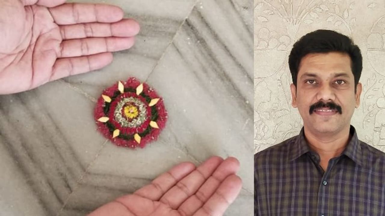 വൈദ്യുതി മേഖലയില് 50ലധികം കണ്ടുപിടിത്തങ്ങള് നടത്തിയ ആളാണ് കെസി ബൈജു. വലിയ ആഘോഷങ്ങളും ഒന്നിനും കുറവു വരുത്താതെ എല്ലാമായി ചെറുതായി ആഘോഷിക്കാമെന്നും. ഇപ്പോള് വേണ്ടത് സ്വയം നിയന്ത്രണങ്ങളാണെന്നുമുള്ള സന്ദേശമാണ് കുഞ്ഞന് പൂക്കളം തരുന്നത്.
