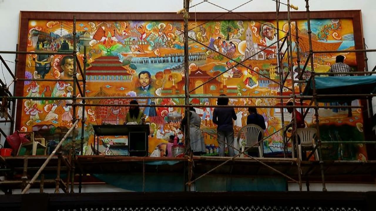 കോർപറേഷൻ ഓഫീസ് നവീകരണത്തിന്റെ ഭാഗമായാണ് ചുമരിലെ വരക്കൂട്ട്. സമരവേലിയേറ്റങ്ങൾക്കിടയിലും ചിത്രങ്ങൾ കണ്ട്, പലരും അഭിപ്രായം പറയുന്നതിന്റെ സന്തോഷം കലാകാരന്മാർക്കുമുണ്ട്.