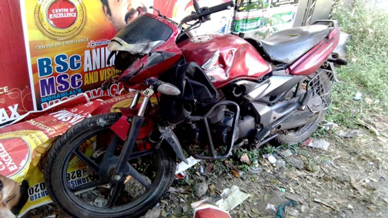 ബൈക്കിന്റെ പിന്നിലുണ്ടായിരുന്ന ശ്രുതി മോളും കാൽനടയാത്രികയായ സാന്ദ്രയും റോഡിൽ തെറിച്ചു വീണു. ബൈക്ക് യാത്രികന്റെ ഹെൽമറ്റ് ഊരി തെറിച്ചു പോയി.
