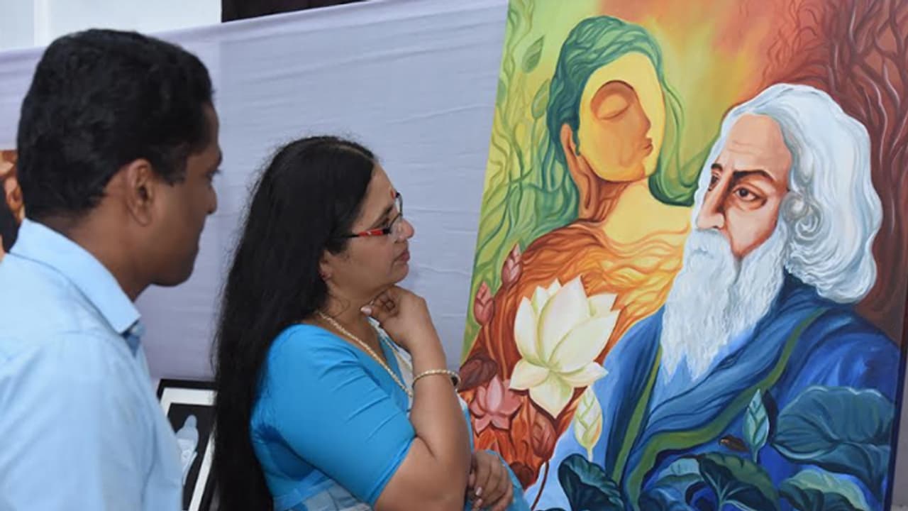 ഡബ്ബിംഗ് ആർട്ടിസ്റ്റ് ഭാഗ്യലക്ഷ്മി , ചിത്രകാരനും ശിൽപ്പിയുമായ ജോൺസ് മാത്യുവിന് ചിത്രം നൽകി പ്രദർശനം ഉദ്ഘാടനം ചെയ്തു.