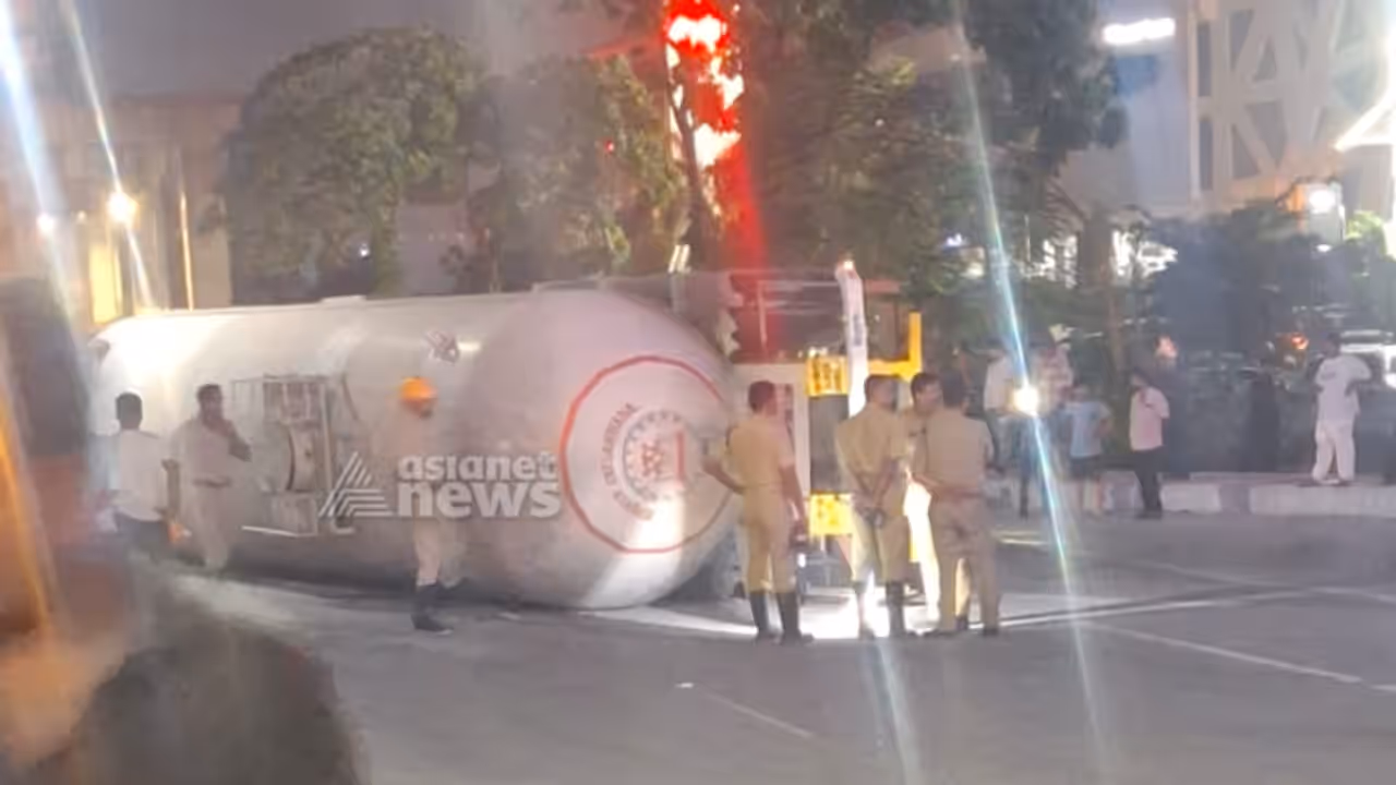 പാചകവാതകവുമായി പോയ ടാങ്കറാണ് അപകടത്തിൽ പെട്ടത്. പ്രാഥമിക പരിശോധനയിൽ ടാങ്കറിന് ചോർച്ചയില്ലെന്ന് വ്യക്തമായി. ഗതാഗതം വഴിതിരിച്ചുവിട്ടിട്ടുണ്ട്. വാഹനത്തിൻ്റെ കാബിനിൽ ഉണ്ടായിരുന്ന ഗ്യാസ് സിലിണ്ടർ എടുത്തുമാറ്റിയിട്ടുണ്ട്. വാതക ചോർച്ച ഇല്ലാത്തത് ആശ്വാസകരമാണ്. ഇരുമ്പനം ഭാഗത്ത് നിന്ന് വന്ന വാഹനമാണ് മീഡിയനിൽ തട്ടി മറിഞ്ഞത്. വാഹനത്തിൽ ഡ്രൈവർ മാത്രമാണ് ഉണ്ടായിരുന്നത്. ഇദ്ദേഹം പരിക്കേൽക്കാതെ രക്ഷപ്പെട്ടു.
