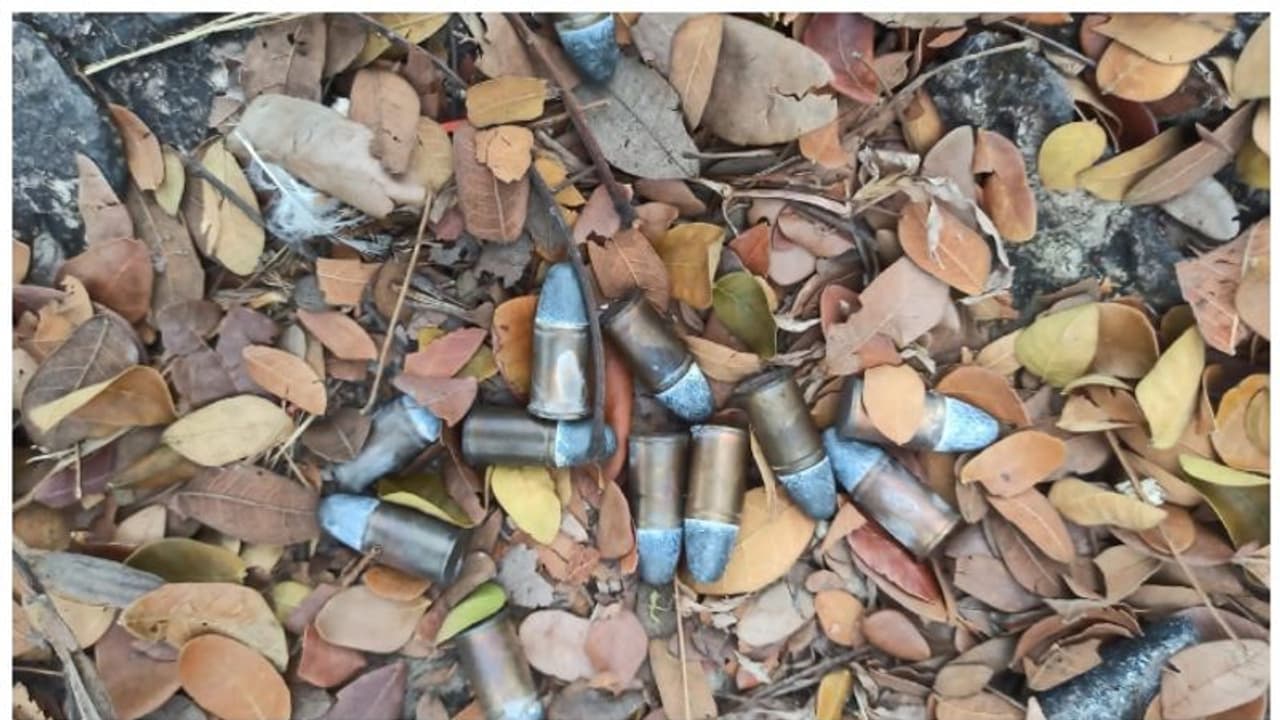 പിസ്റ്റലിൽ ഉപയോഗിക്കുന്ന തരത്തിലുളള ബുളളറ്റുകൾ ആരോ ഉപേക്ഷിച്ചതെന്നാണ് പൊലീസ് കരുതുന്നത്. മരപ്പൊത്തിൽ കണ്ടെത്തിയ ഇവ ക്ലാവ് പിടിച്ച് പഴകിയ നിലയിൽ ആയിരുന്നു.
