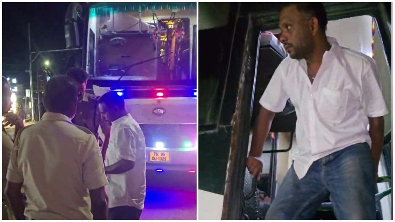കൊല്ലത്ത് നിന്നും ചെന്നൈയിലേക്ക് പോയ സ്വകാര്യ ബസ് ഡ്രൈവർ മദ്യലഹരിയിൽ അപകടകരമായി ഓടിച്ച് ഭീതി പരത്തി. തെൻമലയിൽ വെച്ച് മറ്റൊരു വാഹനത്തിൽ ഇടിച്ച് നിർത്താതെ പോയ ബസ്, ആര്യങ്കാവിനടുത്ത് വെച്ച് നാട്ടുകാരും യാത്രക്കാരും ചേർന്ന് തടയുകയും ഡ്രൈവറെ പൊലീസിൽ ഏൽപ്പിക്കുകയും ചെയ്തു.