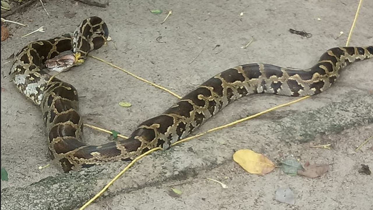 ആലപ്പുഴ പൂച്ചാക്കൽ നാട്ടുകാർ മലമ്പാമ്പിനെ പിടികൂടി വനംവകുപ്പിന് കൈമാറി. പള്ളിപ്പുറം പഞ്ചായത്ത് മൂന്നാം വാർഡ് ചക്കനാട്ട് വെളിയിൽ രഘുവിന്റെ വീട്ടിലെ വരാന്തയിലാണ് മലമ്പാമ്പിനെ കണ്ടെത്തിയത്.