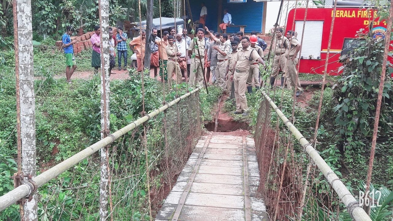 കൂടാതെ, പാലത്തിന്റെ അടിയിലെ മണ്ണ് ഇടിഞ്ഞ് വീണിട്ടുമുണ്ട്. അപകടം മുന്നിൽ കണ്ട് നാട്ടുകാർ വിവരമറിയിച്ചതിനെ തുടർന്ന് താലൂക്ക്, വിലേജ് അധികൃതരും, അഗ്നിശമനസേനയും സ്ഥലത്തെത്തി പലത്തിന്റെ ഇരുഭാഗങ്ങളും അടച്ച് യാത്ര നിരോധിച്ചിരിക്കുകയാണ്. 1992ലാണ് രണ്ടു ജില്ലകളെ കൂട്ടിയിണക്കി ഇവിടെ തൂക്കുപാലം നിർമ്മിച്ചത്.