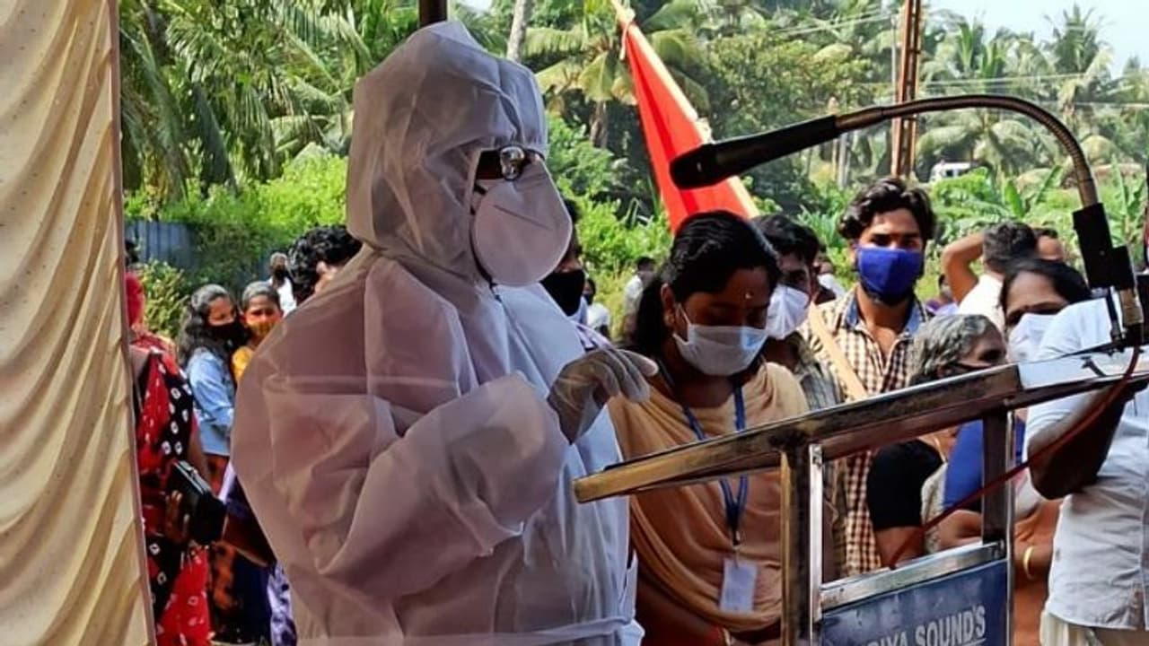 ആലപ്പുഴ: പത്തിയൂർ ഗ്രാമ പഞ്ചായത്തിൽ കൊവിഡ് രോഗി സത്യപ്രതിജ്ഞ ചെയ്തു അധികാരത്തിൽ ഏറി. ഗ്രാമ പഞ്ചായത്തിലെ 3-ാം വാർഡിൽ നിന്നു മത്സരിച്ചു വിജയിച്ച എൽഡിഎഫ് സ്ഥാനാർത്ഥി ലീല ഗോകുൽ ആണ് സത്യപ്രതിജ്ഞക്കു പിപിഇ കിറ്റ് ധരിച്ചു എത്തിയത്.