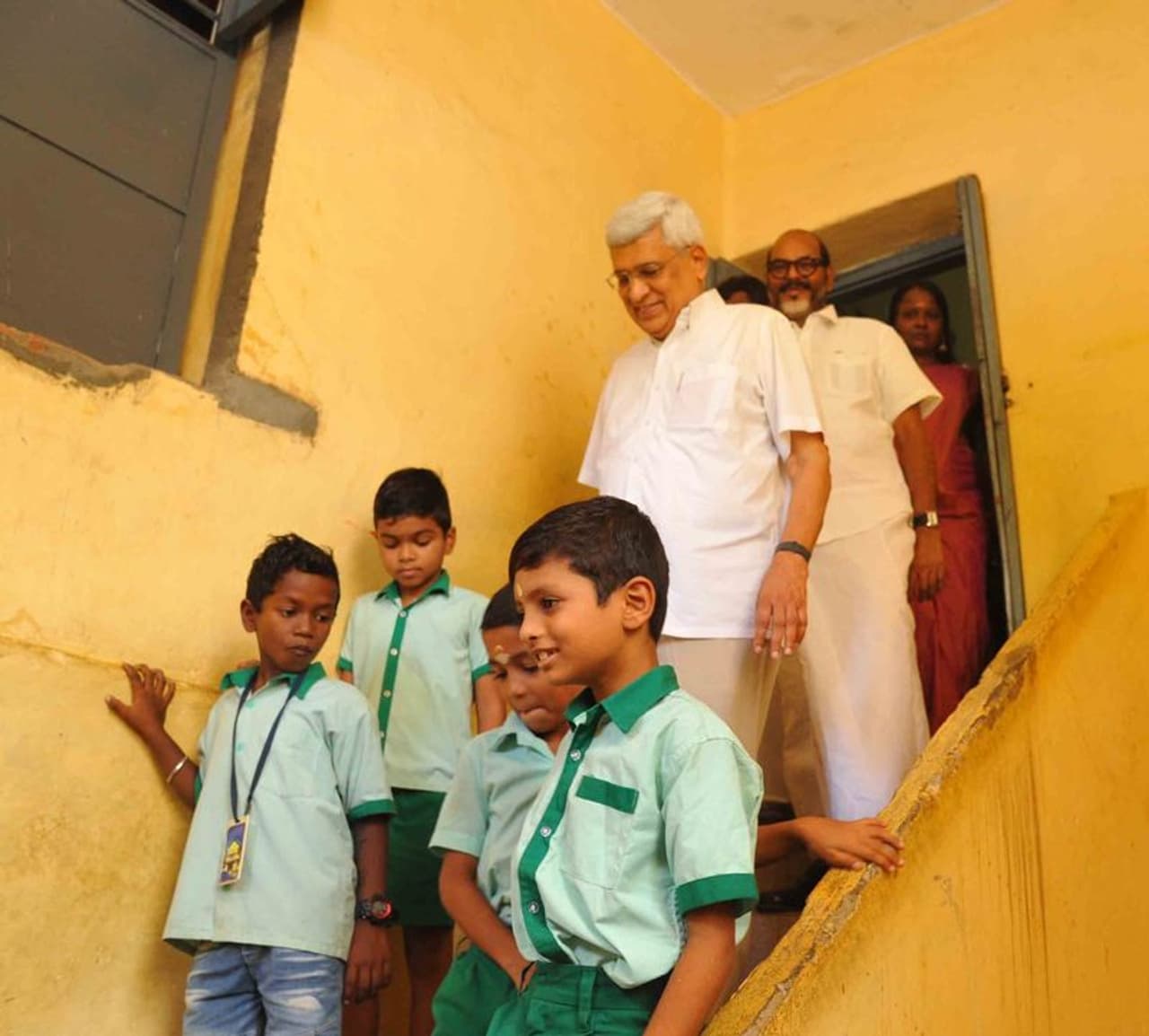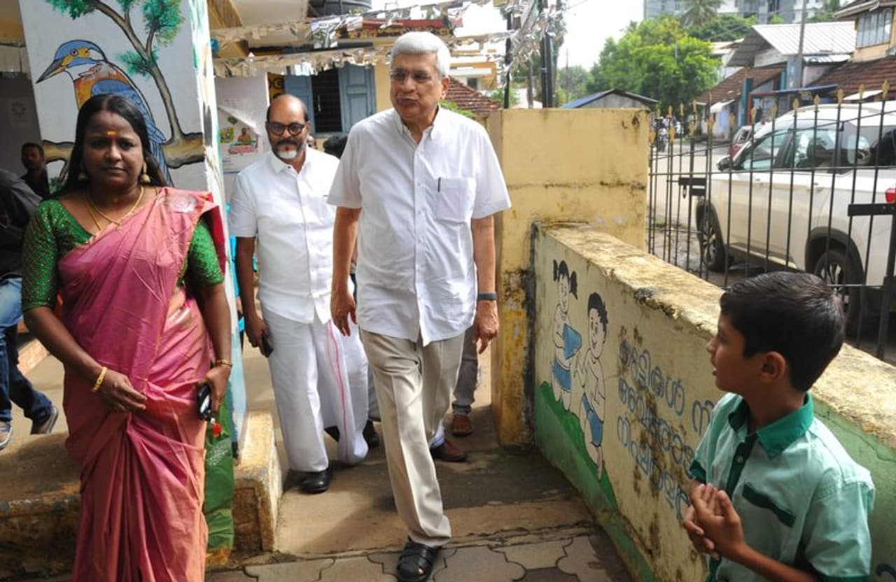 താൻ പഠിച്ച ക്ലാസ് മുറിയും, കളിച്ചു നടന്ന സ്കൂൾ പരിസരവുമെല്ലാം വീണ്ടും കാണാനായതിന്റെ സന്തോഷം മറച്ചുവെച്ചില്ല പ്രകാശ് കാരാട്ട്. കാരാട്ടിന് ചുറ്റും ആളും തിരക്കും കൂടിയതോടെ കുട്ടികളുടെ ശ്രദ്ധയും അങ്ങോട്ടേക്കായി. ടിവിയിലൊക്കെ വരുന്ന ആളല്ലേ എന്ന മട്ടിൽ ചിലരൊക്കെ അദ്ദേഹത്തെ തന്നെ നോക്കി നിന്നു. ടീച്ചർമാരും മറ്റ് സ്റ്റാഫുകളും കാരാട്ടിനൊപ്പം നിന്ന് ഫോട്ടോ എടുത്തപ്പോൾ കുട്ടികളും മാറിനിന്നില്ല. അവരും കാരാട്ടിനൊപ്പം നിന്ന് ഫോട്ടോയ്ക്ക് പോസ് ചെയ്തു.