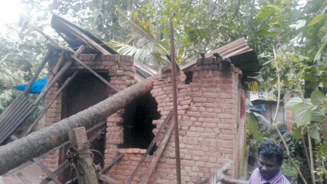 പുലര്ച്ചെ മൂന്നോടെയായിരുന്നു വീടുകള് തകര്ന്നത്. അടുത്തടുത്തായി മൂന്ന് വീടുകളുടെ മുകളിലേക്കാണ് മരങ്ങള് വീണത്. രണ്ടിടത്ത് ആള് താമസം ഉണ്ടായിരുന്നെങ്കിലും അപായമുണ്ടായില്ല. രണ്ട് വീടുകള്ക്ക് ഭാഗികമായി കേട് പറ്റി. പ്രദേശത്ത് തേക്ക്, വീട്ടി, മാവ്, പ്ലാവ് ഉള്പ്പടെ നൂറുകണക്കിന് മരങ്ങള് നിലംപതിച്ചിട്ടുണ്ട്.