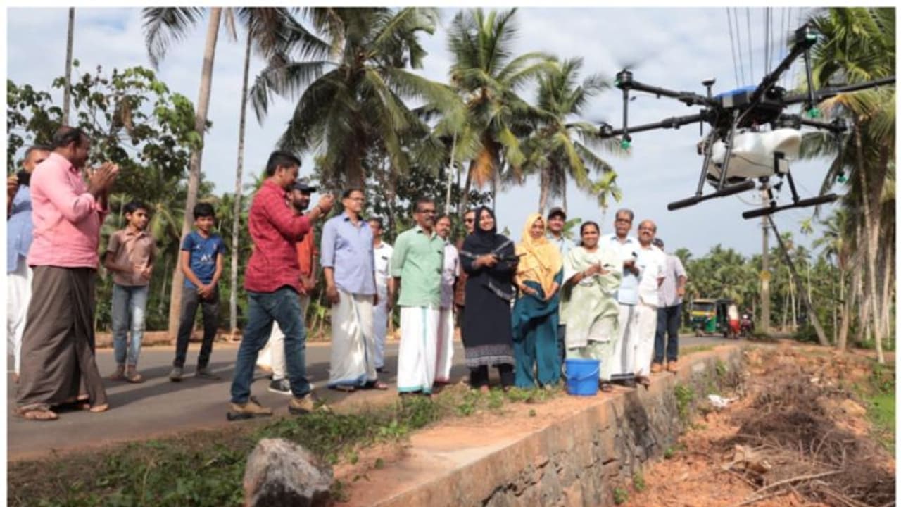 കേന്ദ്ര സുഗന്ധവിള ഗവേഷണ കേന്ദ്രത്തിന്റെയും വേളം കൃഷി ഭവന്റെയും നേതൃത്വത്തിലാണ് ഡ്രോണ് ഉപയോഗിച്ച് സൂക്ഷമമൂലകങ്ങള് തളിക്കുന്നതിന്റെ പ്രദര്ശനം ആണ് നടത്തിയത്. കേരള കാര്ഷിക സര്വ്വകലാശാല പുറത്തിറക്കിയ കെ.എ.യു സമ്പൂര്ണ്ണ മള്ട്ടിമിക്സ് എന്ന സൂക്ഷമ വളക്കൂട്ടാണ് ഡ്രോണ് ഉപയോഗിച്ച് തളിച്ചത്.