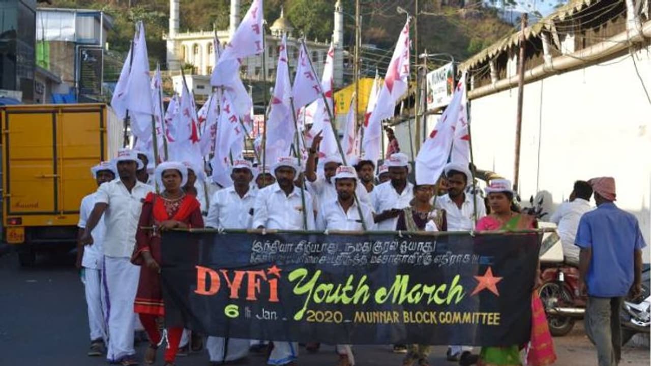 'ഇന്ത്യ കീഴടങ്ങില്ല നമ്മള് നിശബ്ദരാകില്ല' എന്ന മുദ്രാവാക്യം ഉയര്ത്തി ഡിവൈഎഫ്ഐ സംസ്ഥാന കമ്മറ്റിയുടെ നേത്യത്വത്തില് മലപ്പുറത്തുനിന്ന് കോഴിക്കോട്ടേക്ക് നടത്തിയ മാര്ച്ചിന് അഭിവാദ്യമര്പ്പിച്ചാണ് മൂന്നാര് ബ്ലോക്ക് കമ്മറ്റിയുടെ നേത്യത്വത്തില് പ്രവര്ത്തകര് മഹാ യൂത്ത് മാര്ച്ചും പൊതുസമ്മേളനവും സംഘടിപ്പിച്ചത്.