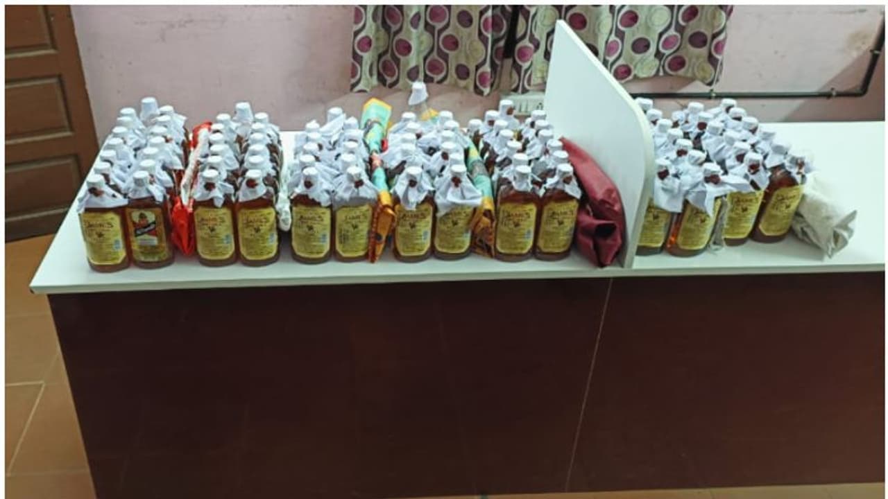 അര ലിറ്റർ കുപ്പികളിലായി നിറച്ചുവച്ചിരുന്ന മദ്യമാണ് പൊലീസ് പിടികൂടിയത്