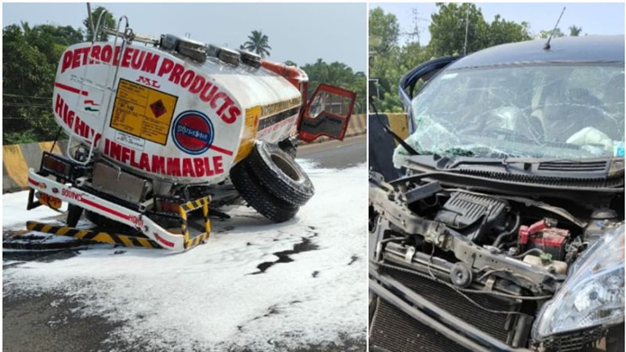 വിവരം അറിഞ്ഞ സ്ഥലത്തെത്തിയ അഗ്നിശമന സേനയാണ് ഫോം പമ്പ് ചെയ്ത് സ്ഥലം സുരക്ഷിതം ആക്കിയത്. റോഡിലേക്ക് വീണ പെട്രോളിയം ഉത്പന്നങ്ങള് നീക്കം ചെയ്യുകയും ചെയ്തു. ഇതിനൊപ്പം മറ്റൊരു ടാങ്കറിലേക്ക് ഇന്ധനം മാറ്റുന്നതിന് ആവശ്യമായ നടപടികള് സ്വീകരിക്കുകയും ചെയ്തതായി ഫയര് ഫോഴ്സ് അറിയിച്ചു. ഇതിനിടെ അപകടത്തില് പെട്ടവരെ ആശുപത്രിയില് എത്തിക്കുകയും ചെയ്തു. പിന്നീട് ക്രെയിന് ഉപയോഗിച്ച് അപകടത്തില് പെട്ട ടാങ്കര് മാറ്റിയും റിക്കവറി വാന് ഉപയോഗിച്ച് കാര് മാറ്റിയും ഗതാഗതം പുനഃസ്ഥാപിക്കുകയും ചെയ്തതായി അഗ്നിശമന സേന അറിയിച്ചു.