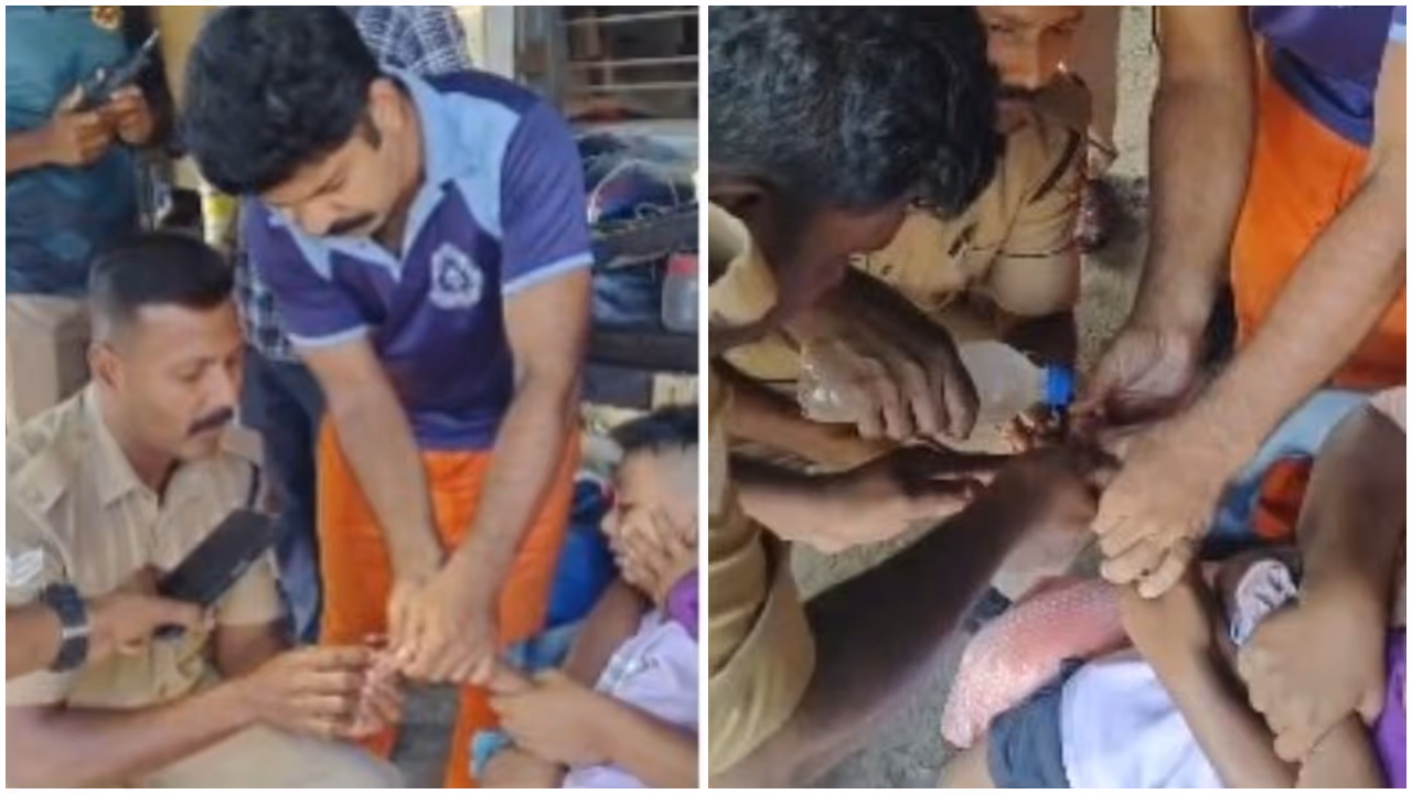 വിഴിഞ്ഞത്ത് അഞ്ച് വയസുകാരന്റെ കൈവിരലിൽ സ്റ്റീൽ മോതിരം കുടുങ്ങി നീര് വന്നതിനെ തുടർന്ന് ഫയർഫോഴ്സ് എത്തി രക്ഷപ്പെടുത്തി. വേദനകൊണ്ട് പുളഞ്ഞ കുട്ടിയുടെ വിരലിൽ നിന്നും റിംഗ് കട്ടർ ഉപയോഗിച്ച് സേനാംഗങ്ങൾ സുരക്ഷിതമായി മോതിരം മുറിച്ചുനീക്കി. മിനിറ്റുകൾക്കുള്ളിൽ നടത്തിയ രക്ഷാപ്രവർത്തനം കുട്ടിക്കും കുടുംബത്തിനും ആശ്വാസമായി.