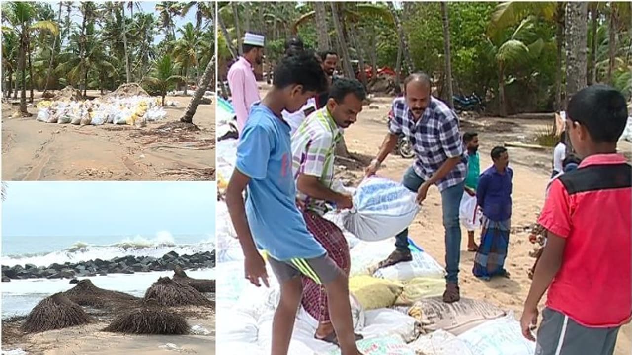 ഇതിനായി രാഷ്ട്രീയ ഭേദമില്ലാതെ തീരദേശ സംരക്ഷണ സമിതി രൂപീകരിച്ചു. പ്രദേശത്തെ യുവാക്കൾ മുൻകയ്യെടുത്ത് താൽക്കാലിക ഭിത്തി നിർമ്മാണം തുടങ്ങി. മൂവായിരത്തിലേറെ ചാക്കുകളിലാണ് മണൽ നിറച്ചത്. കഴിഞ്ഞ ദിവസങ്ങളിൽ അറപ്പ, മണപ്പാട്ടുച്ചാൽ, പേ ബസാർ എന്നിവിടങ്ങളിൽ കടൽ കയറിയിരുന്നു. നിരവധി കുടുംബങ്ങൾ ഇപ്പോഴും ക്യാംപുകളിലാണ്. ഇതൊരു താൽക്കാലിക പരിഹാരം മാത്രമാണെന്നും നിരന്തര പരിഹാരത്തിന് അധികൃതർ കണ്ണു തുറക്കണമെന്നുമാണ് ഇവരുടെ ആവശ്യം.